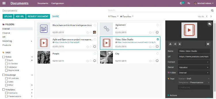 باستخدام مستندات Odoo Documents، يمكنك بسهولة مشاركة، إرسال، تصنيف وأرشفة المستندات الممسوحة ضوئيًا. يمكنك أيضًا إنشاء وثائق تجارية مثل فواتير الموردين، والمهام، وبطاقات المنتجات للتصنيع.